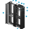 A key feature is the independent, adjustable front and rear equipment mounting rails, which can support equipment depths from 3″ to 41.5″. The rails include printed rack unit numbering for quick installation and can be flipped to have numbers facing up or down. The entire structure is electrically bonded for simple and proper grounding. The rack system is designed to seamlessly integrate with Panduit’s NetRunner™ and PatchRunner™ vertical cable managers and a wide array of accessories like shelves, power distribution units (PDUs), and tie-off brackets.